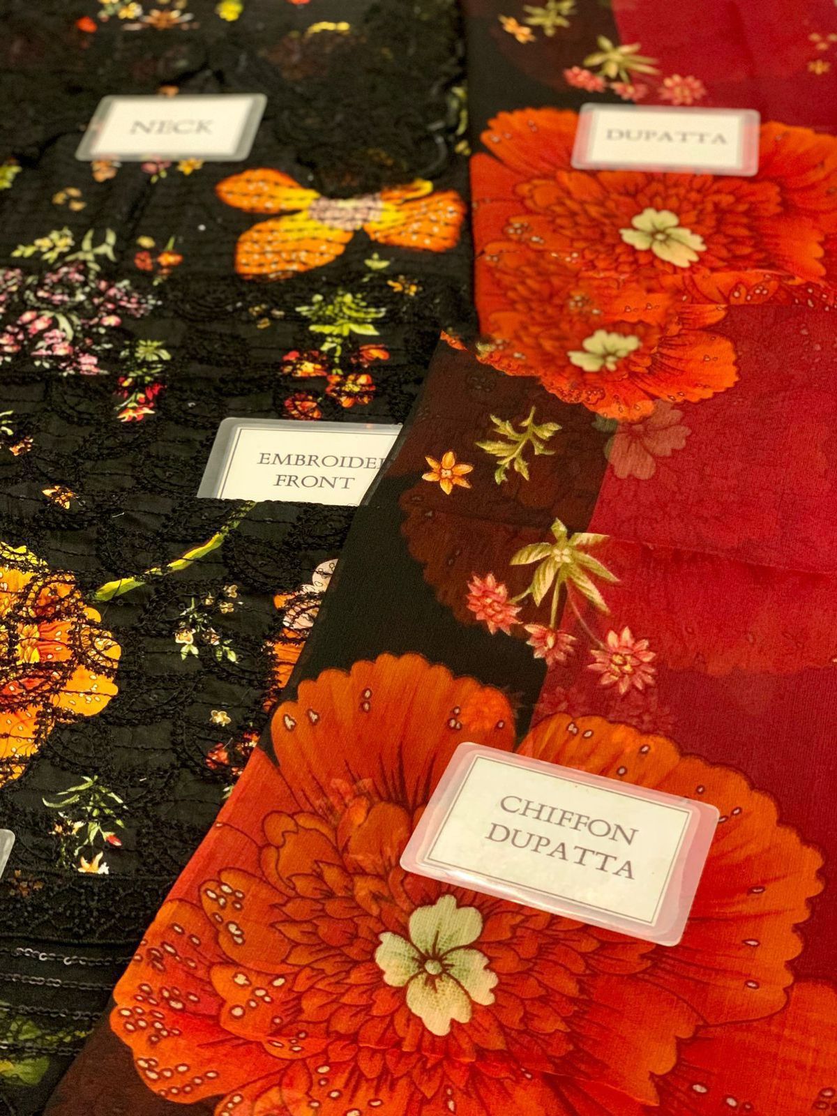 Finely detailed embroidered neckline & daman