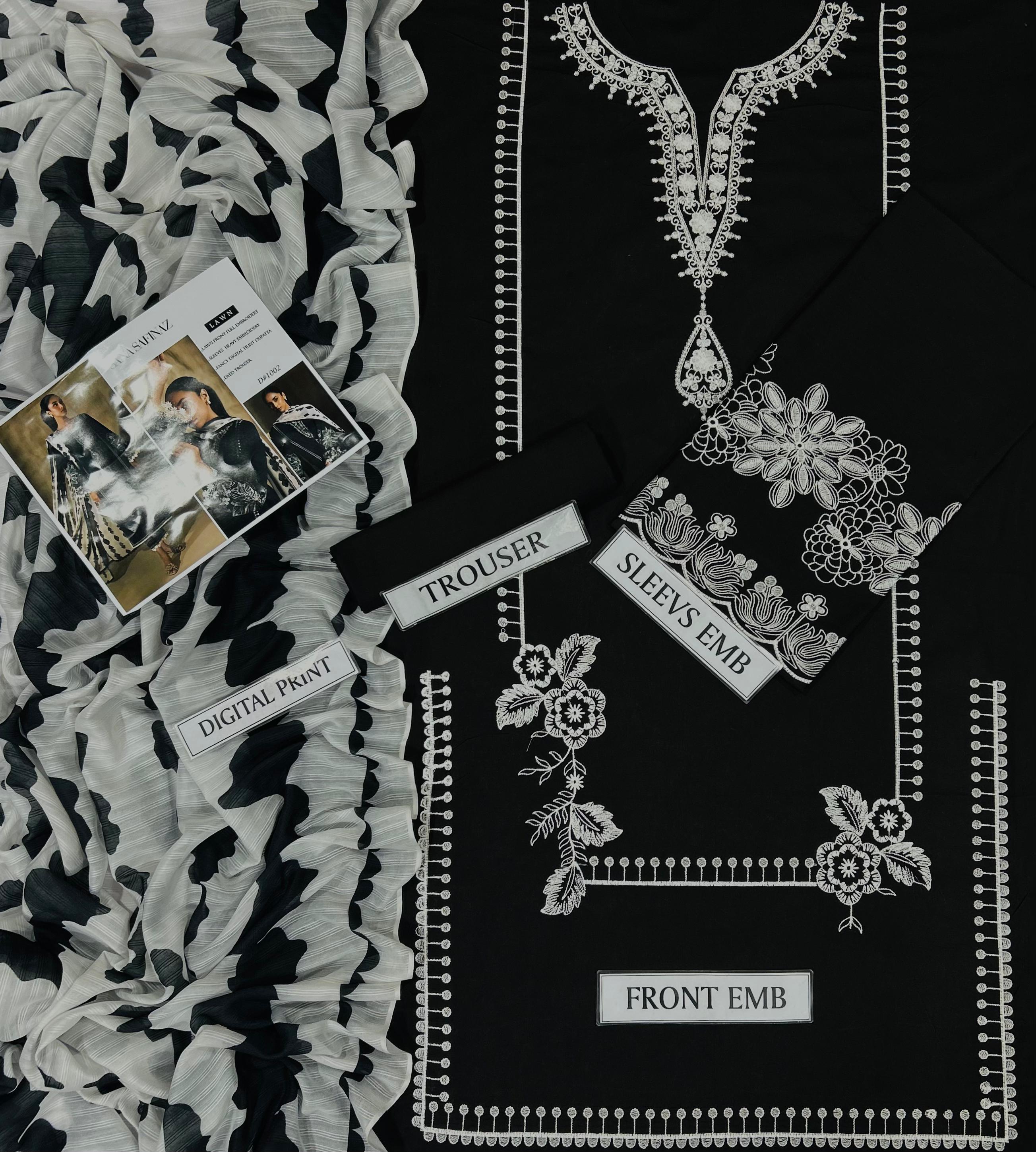 Inspired by celebrity elegance and crafted for modern sophistication, this premium 3-piece embroidered lawn suit blends statement detailing with breathable summer comfort. A timeless ensemble designed to make you stand out effortlessly.