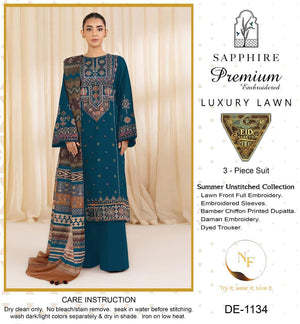SAPPHIRE 3PC EMBROIDERY LWAN (N.F)